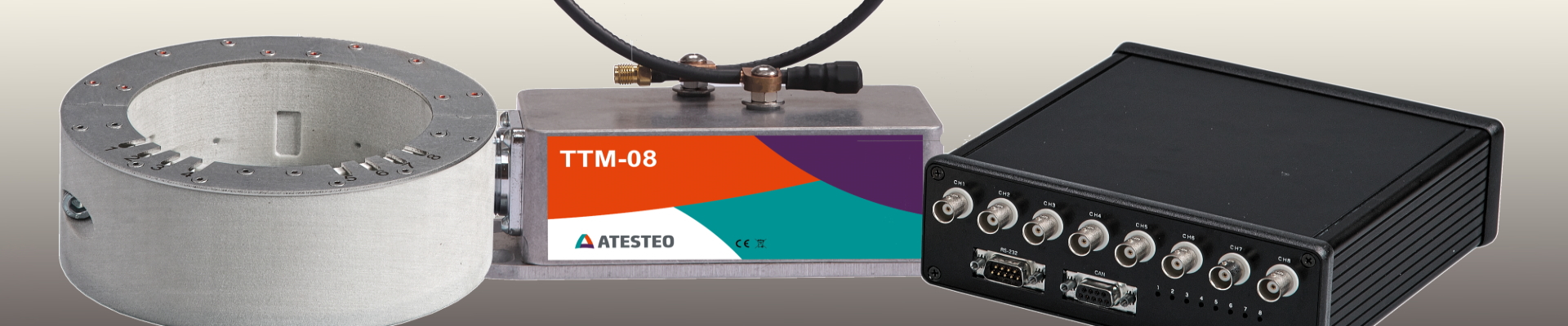 測温リングTTRは多チャンネルの温度テレメータです。リング径はお客様の要求にあった大きさでご提供可能であり、熱電対への配線と固定およびパラメータの設定で使用できます。また、誘導電源による回転部への電源供給により連続計測可能です。